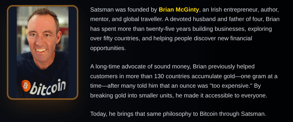 Satsman.com is a new Bitcoin-focused platform, founded by Brian McGinty, an Irish entrepreneur, author, mentor, and global traveller.