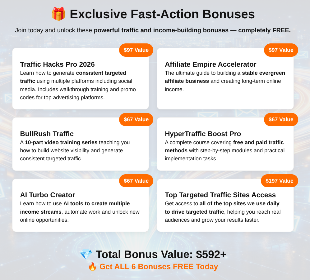 - Massive bonus package included (see screenshot below).